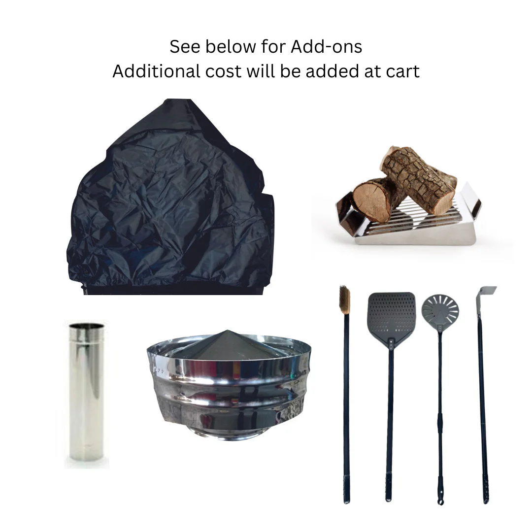 The pizza oven is made for outdoor use, however, ovens require “all-weather” protection from rain and harsh elements when not in use. We supply a high-quality, weatherproof, UV resistant, custom-made cover. Please click add-on to add to your order.